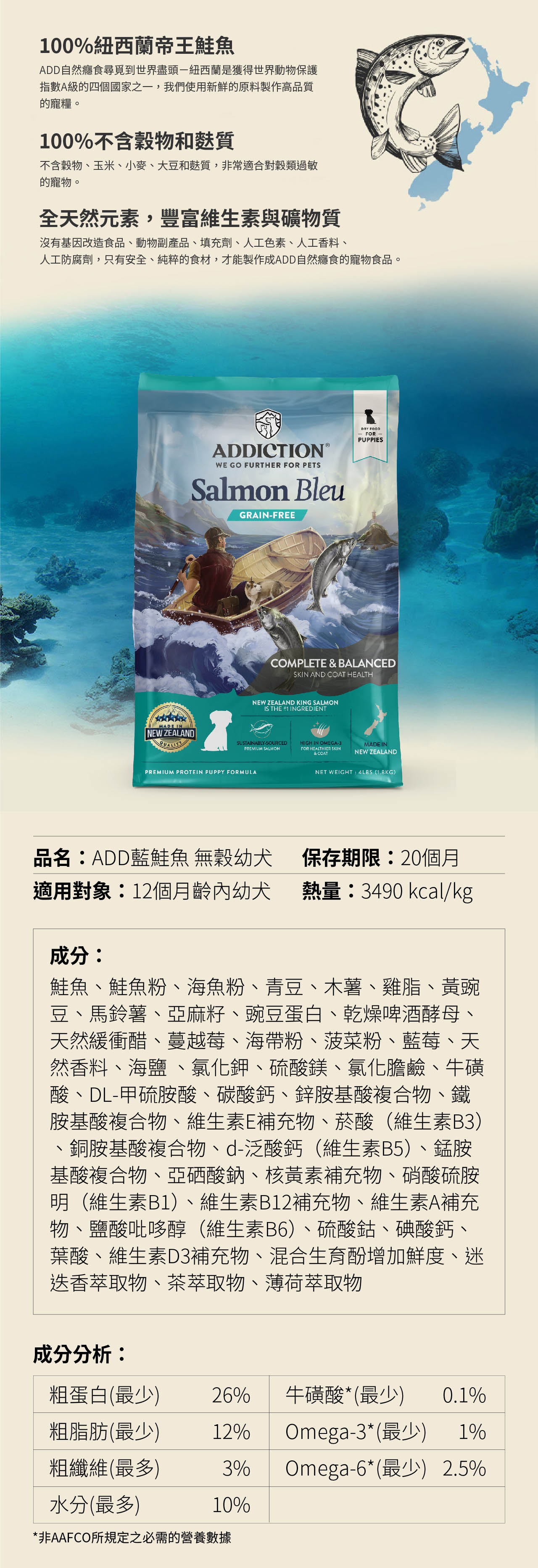 【紐西蘭 ADDICTION】ADD自然癮食《 幼犬 無穀幼犬 藍鮭魚 350g 》專為12個月以下幼犬