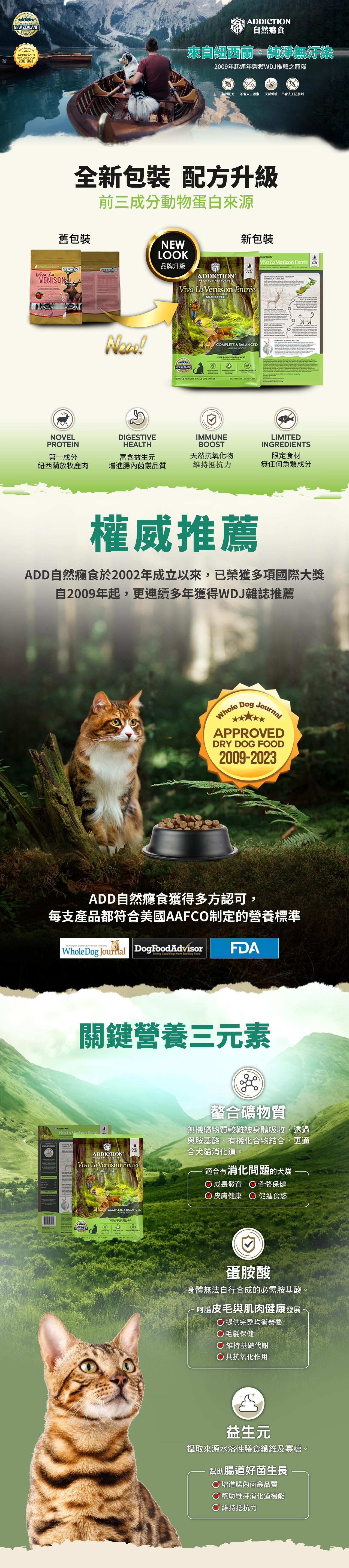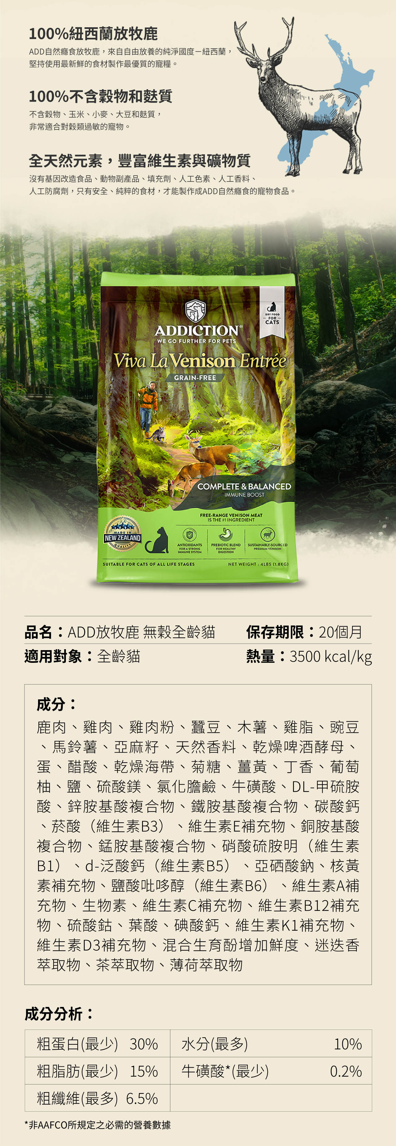 【紐西蘭 ADDICTION】ADD自然癮食《 無穀全齡貓 放牧鹿肉 1.8kg 》