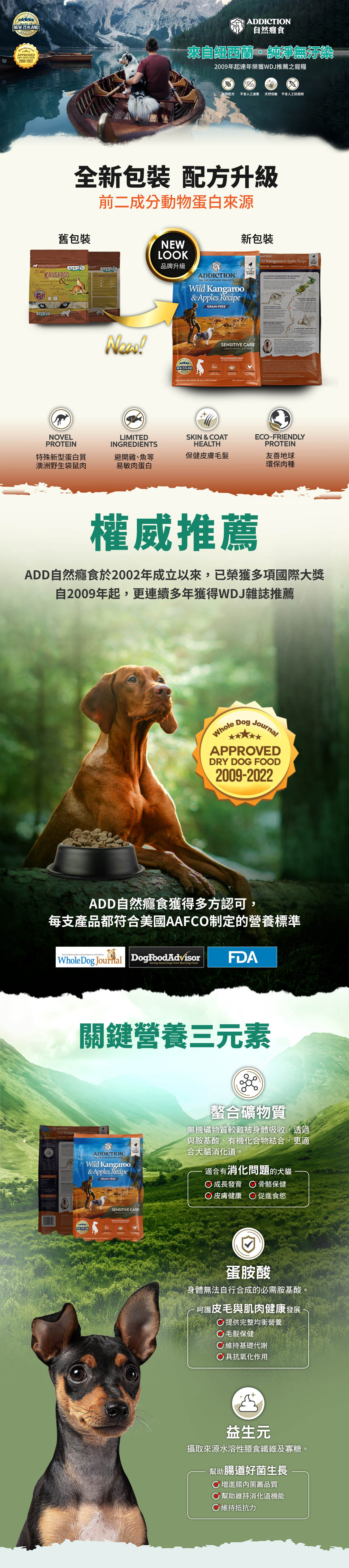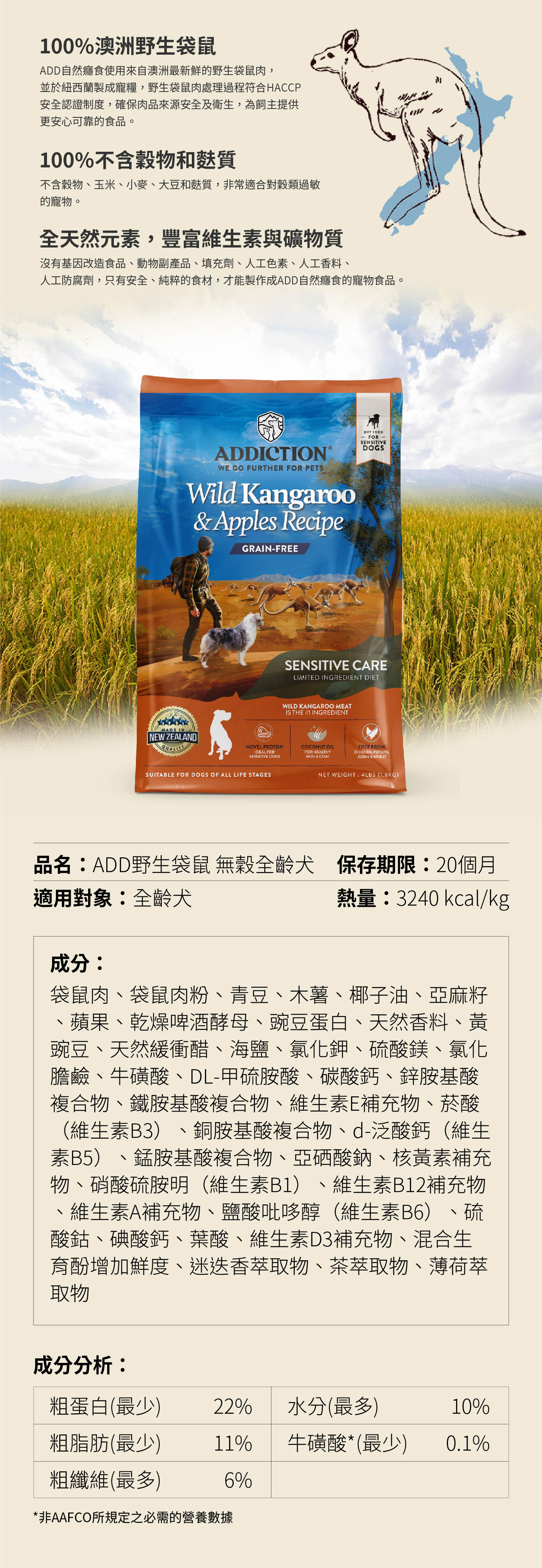【紐西蘭 ADDICTION】ADD自然癮食《 無穀全齡犬 野生袋鼠 1.8kg》
