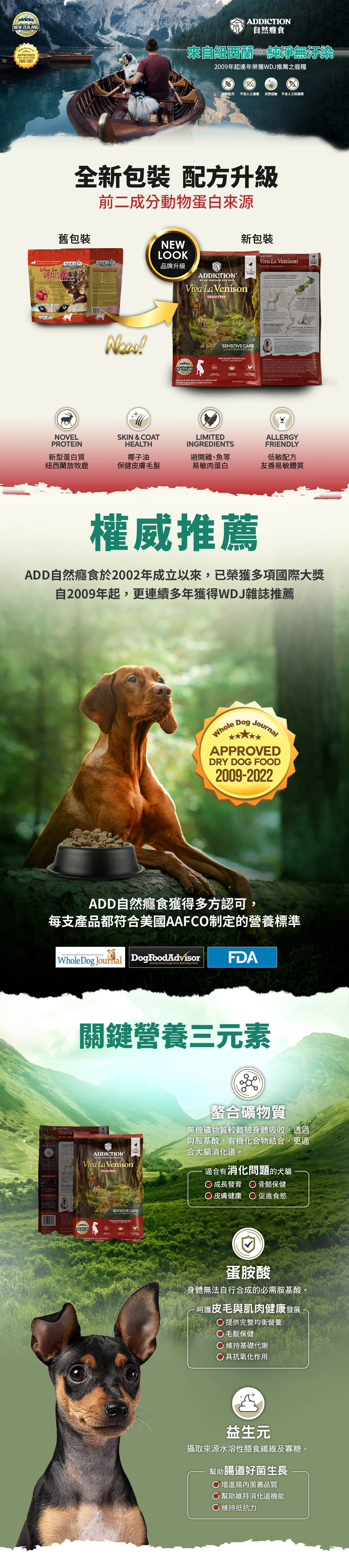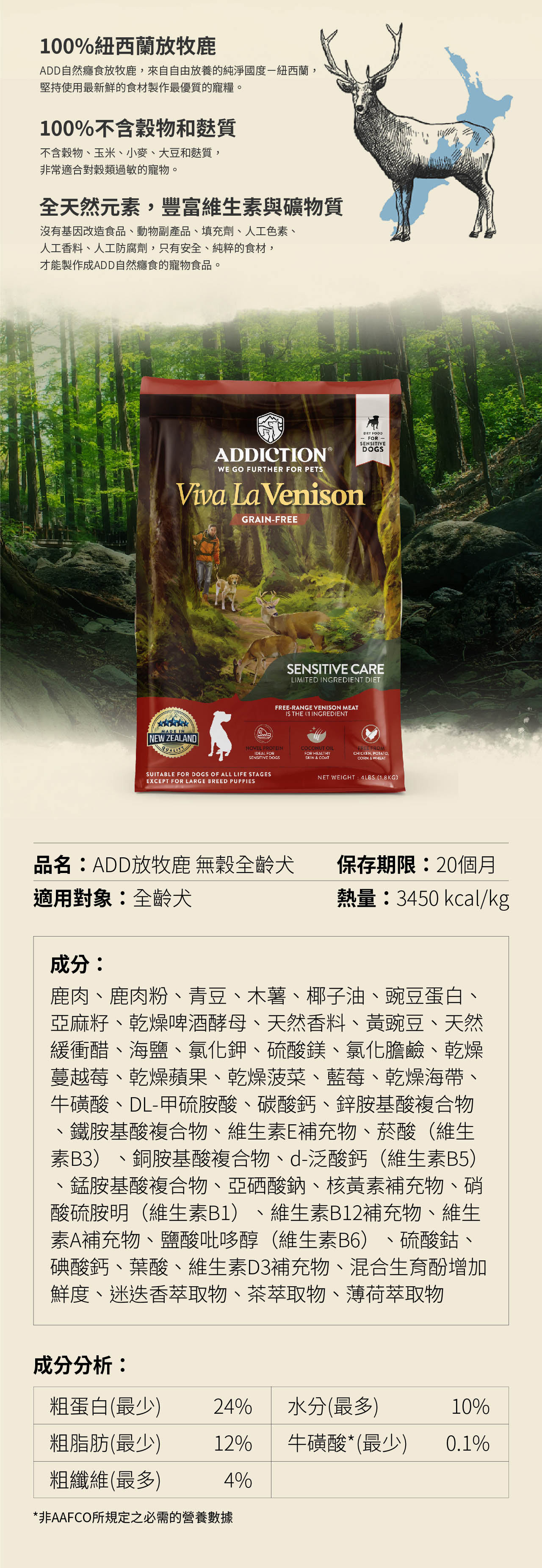 【紐西蘭 ADDICTION】ADD自然癮食《 無穀全齡犬 放牧鹿肉 15kg》