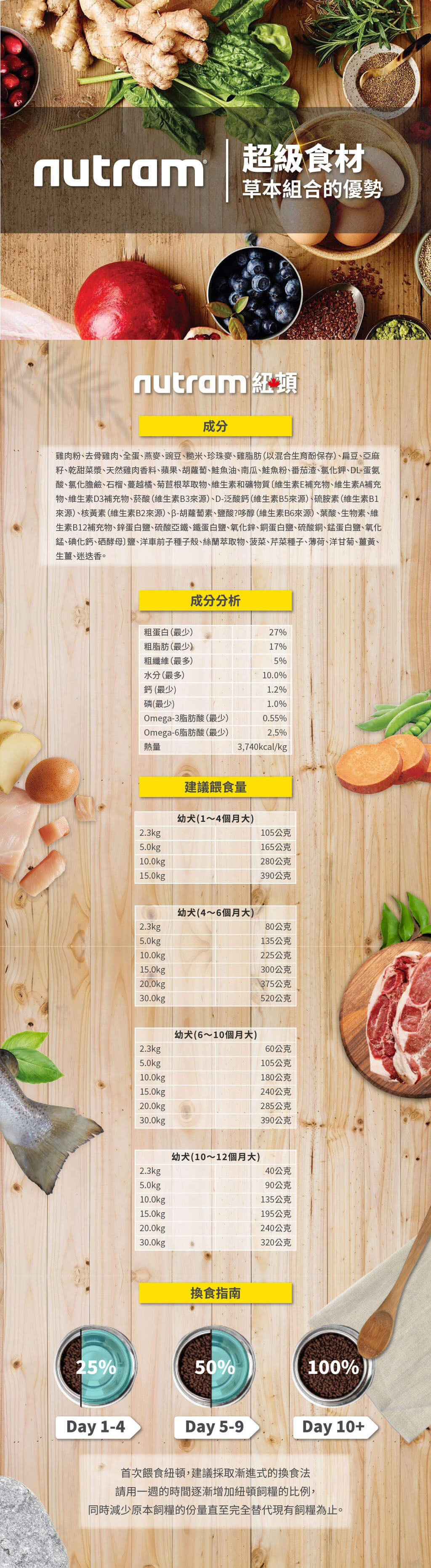加拿大紐頓 Nutram 《S2 幼犬(雞肉燕麥)》