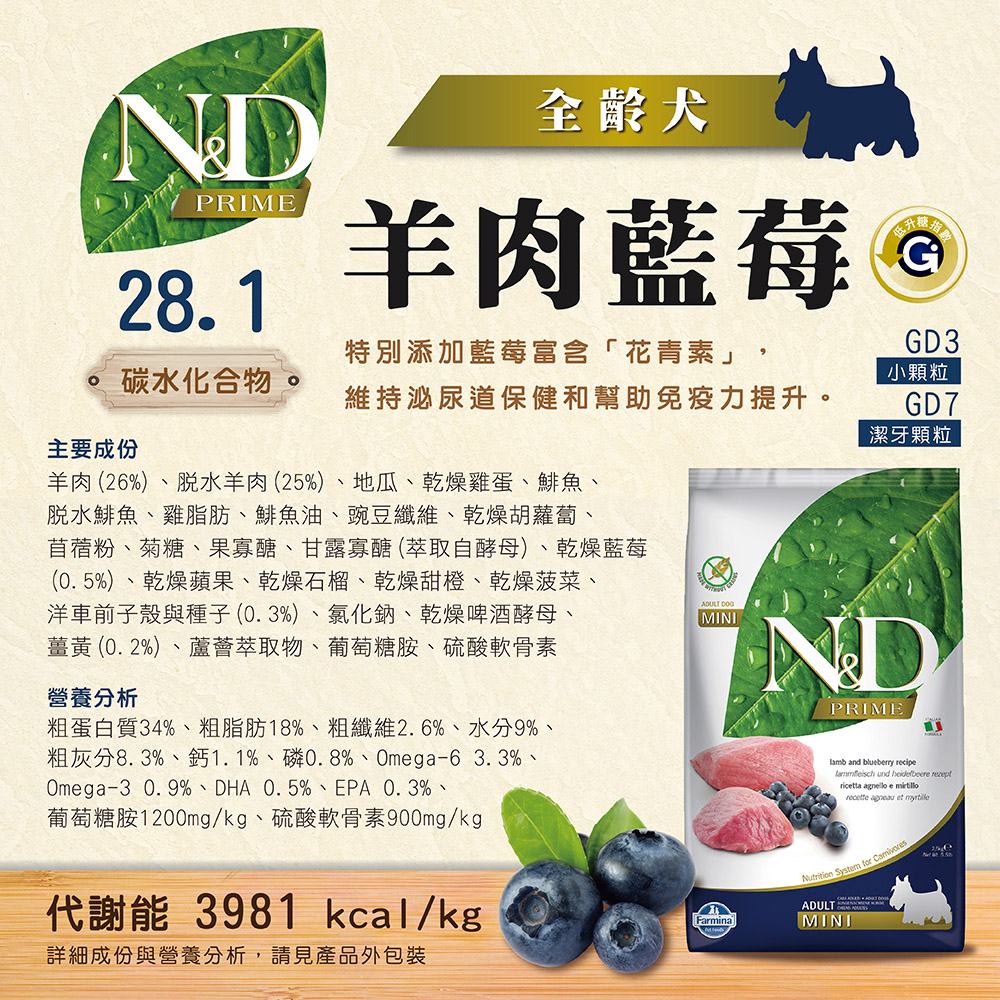 【義大利‧法米納Farmina】頂級無穀狗飼料《成犬GD7羊肉藍莓 12kg潔牙顆粒》