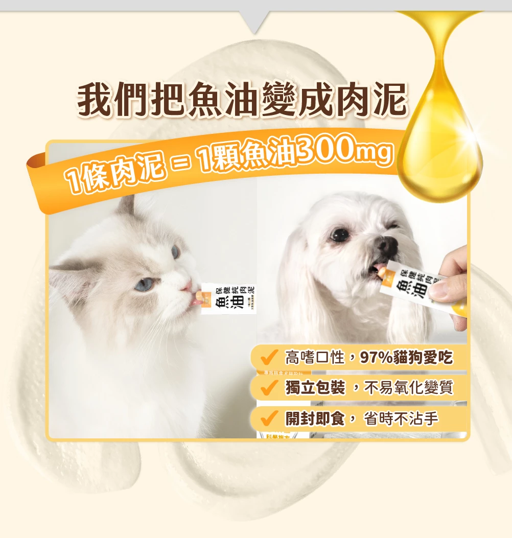 一條肉泥 = 一顆魚油 300 mg