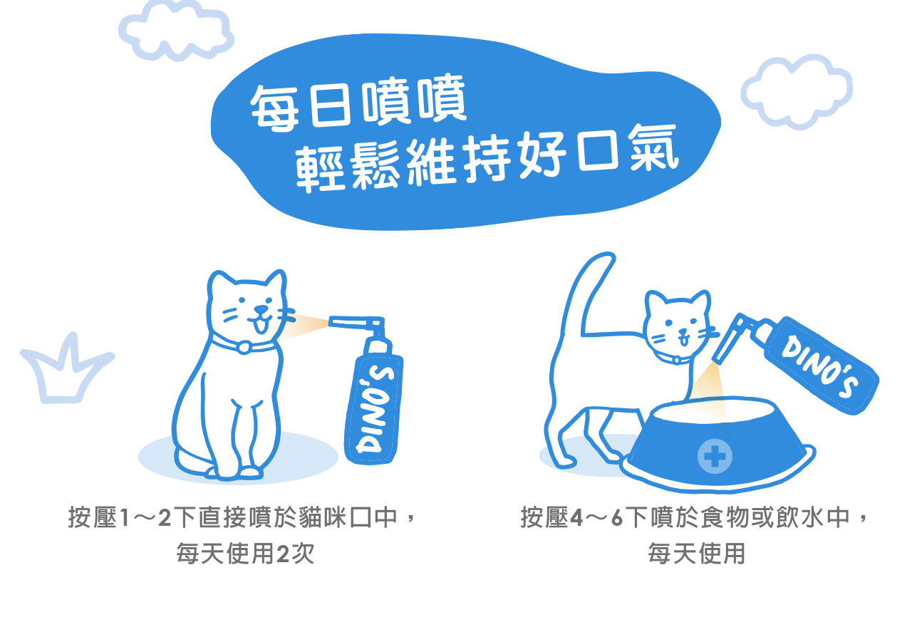 按壓1~2下直接噴於毛孩口中,每天使用兩次