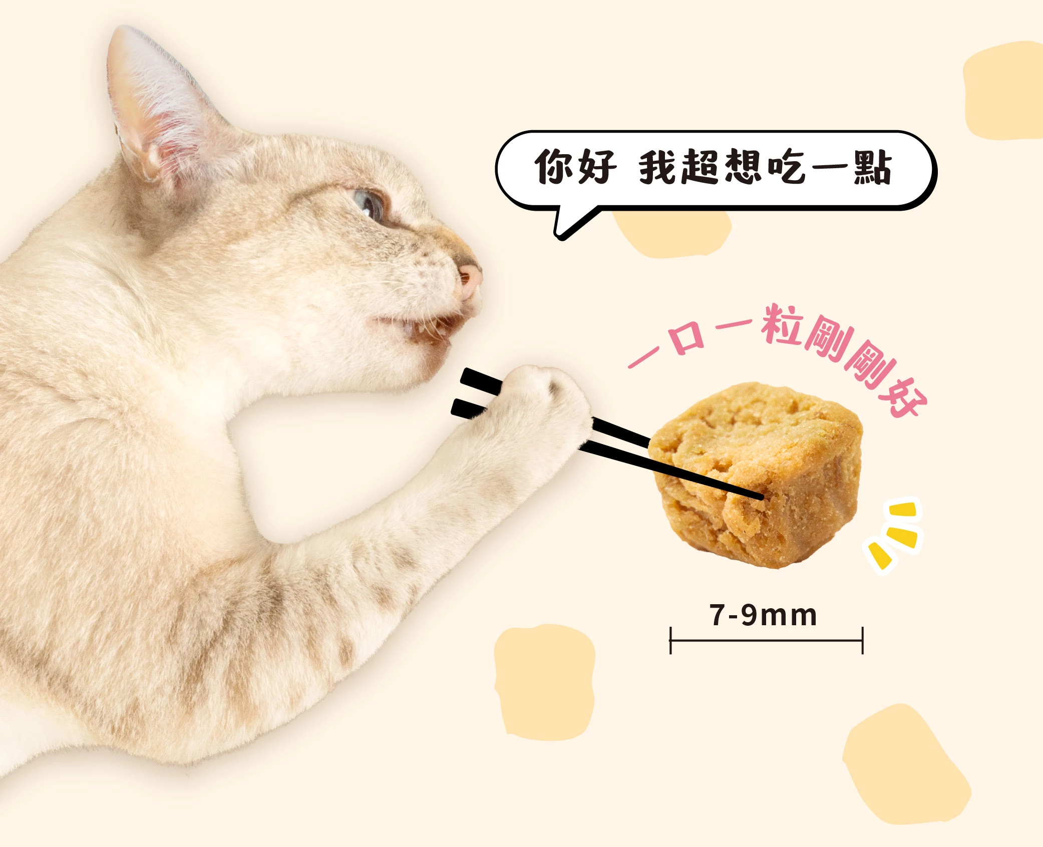 ☑ 7-9mm小顆粒設計,一口一顆方便餵
