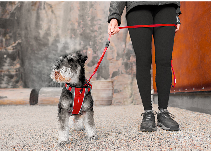 或是用前D環來防止狗狗暴衝,也可以確保暴衝時不勒氣管,藉此達到完全減壓的效果。
