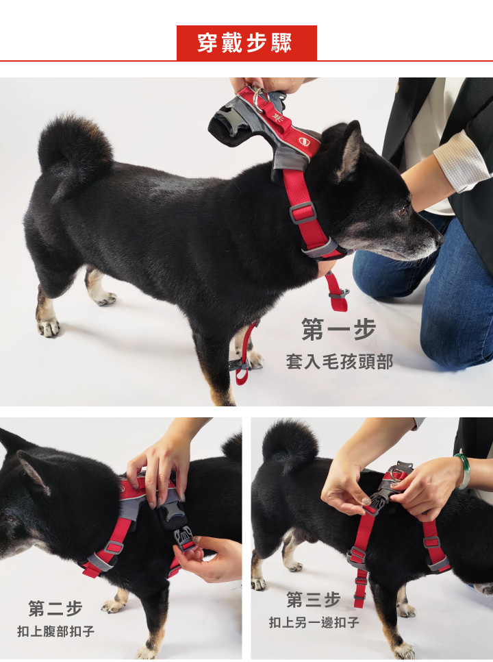 特殊的X型設計可以防止掙脫,且有大片的前胸墊可以分散和將低狗狗衝擊時的衝擊力,