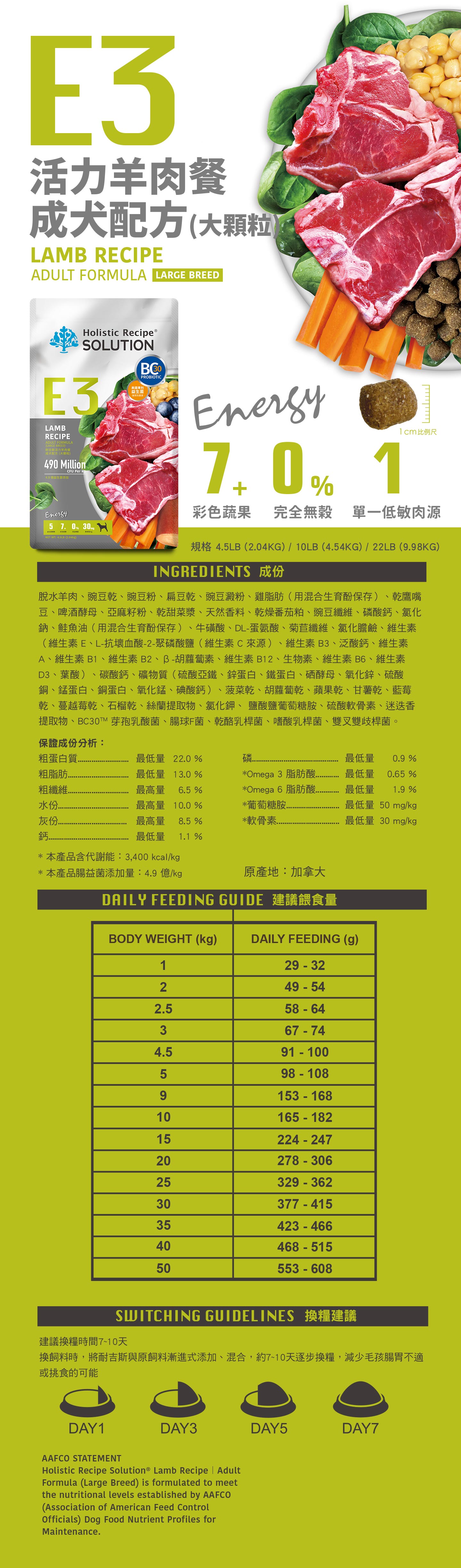 【耐吉斯 Solution】 E3 活力羊肉餐-無穀成犬配方大顆粒 大型犬 狗狗 成犬