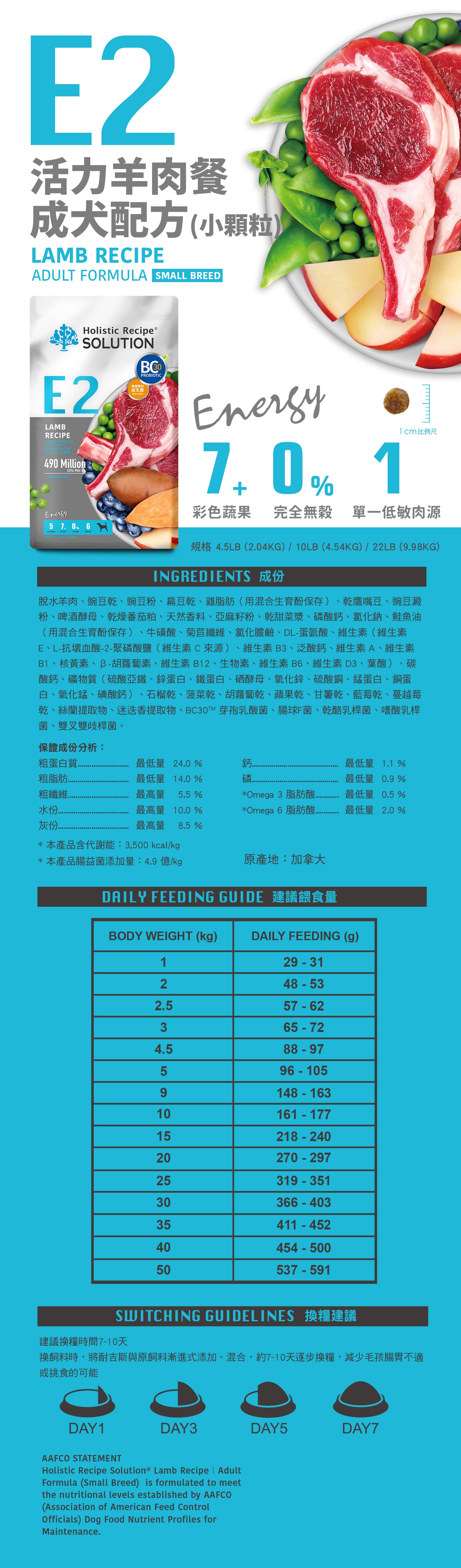Solution耐吉斯 E2活力羊肉餐-無穀成犬配方(小顆粒) 狗狗飼料 狗糧 成犬