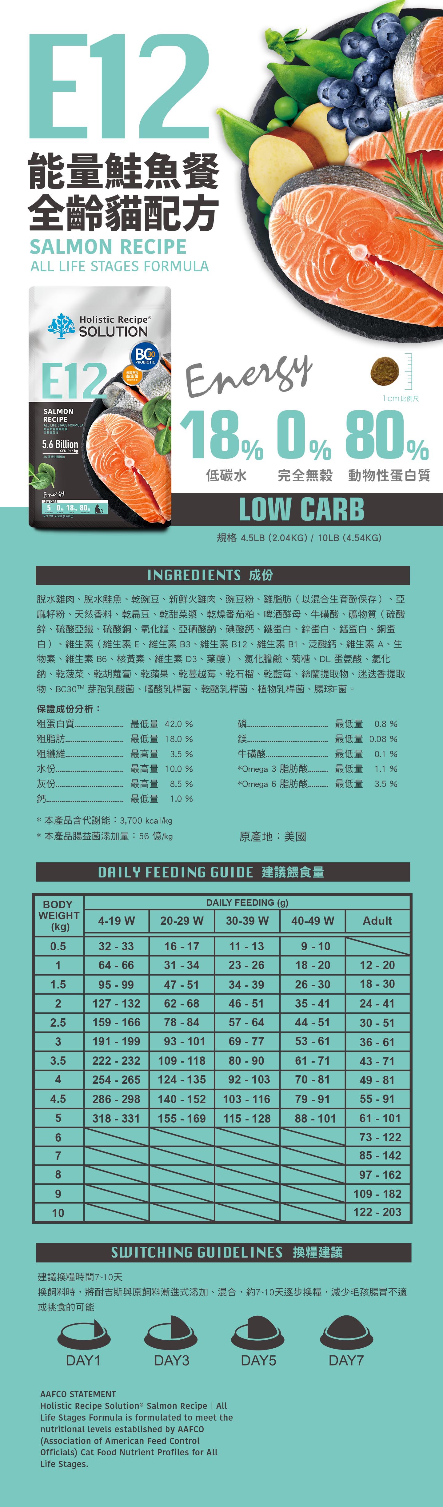 Solution 耐吉斯 E12 能量鮭魚餐-無穀全齡貓配方4.5磅 貓飼料