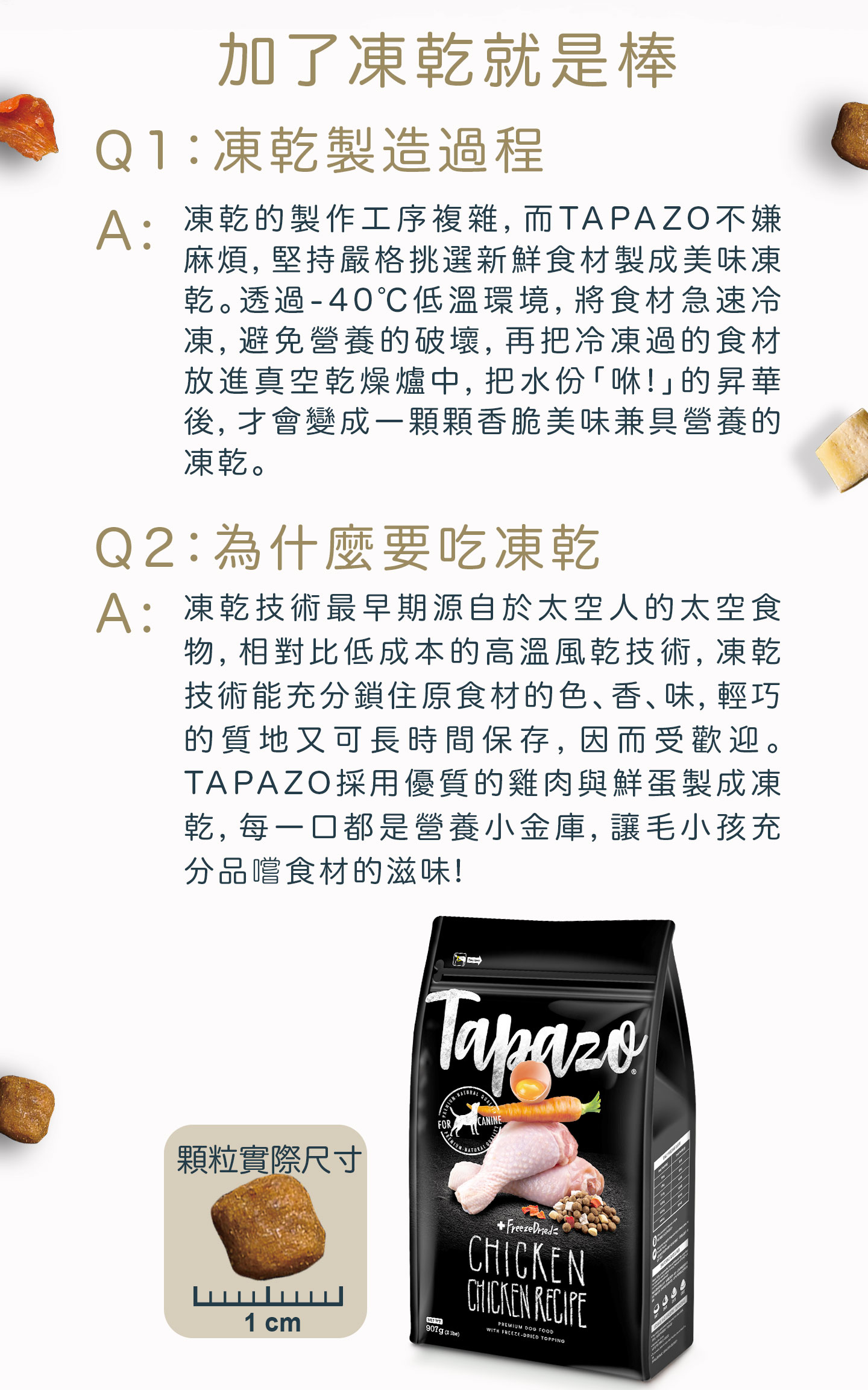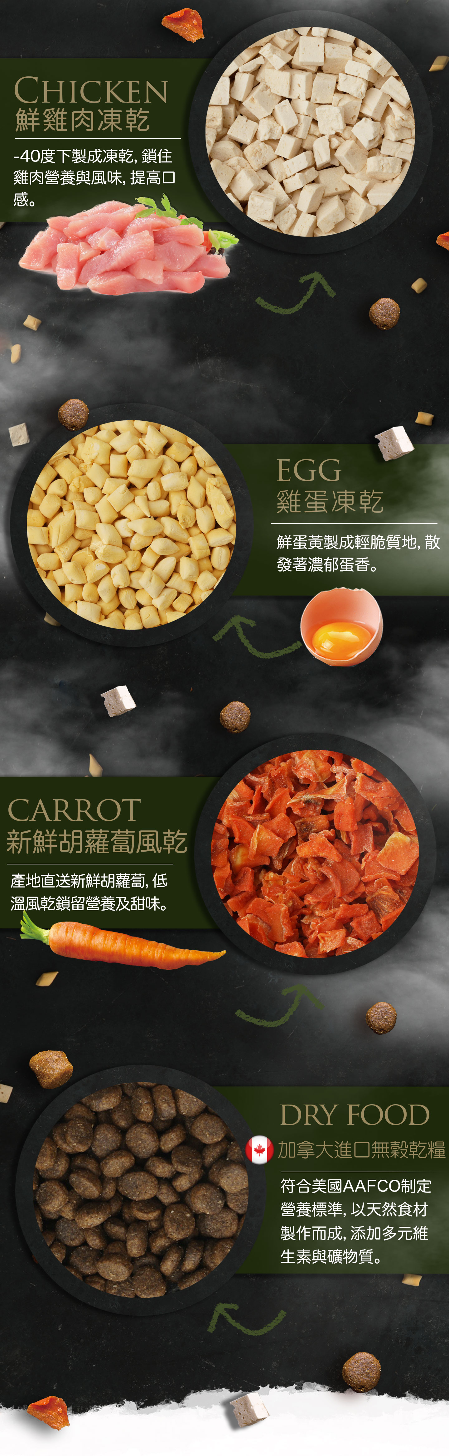 雞肉凍乾粒、鮮蛋凍乾粒、乾燥胡蘿蔔-台灣