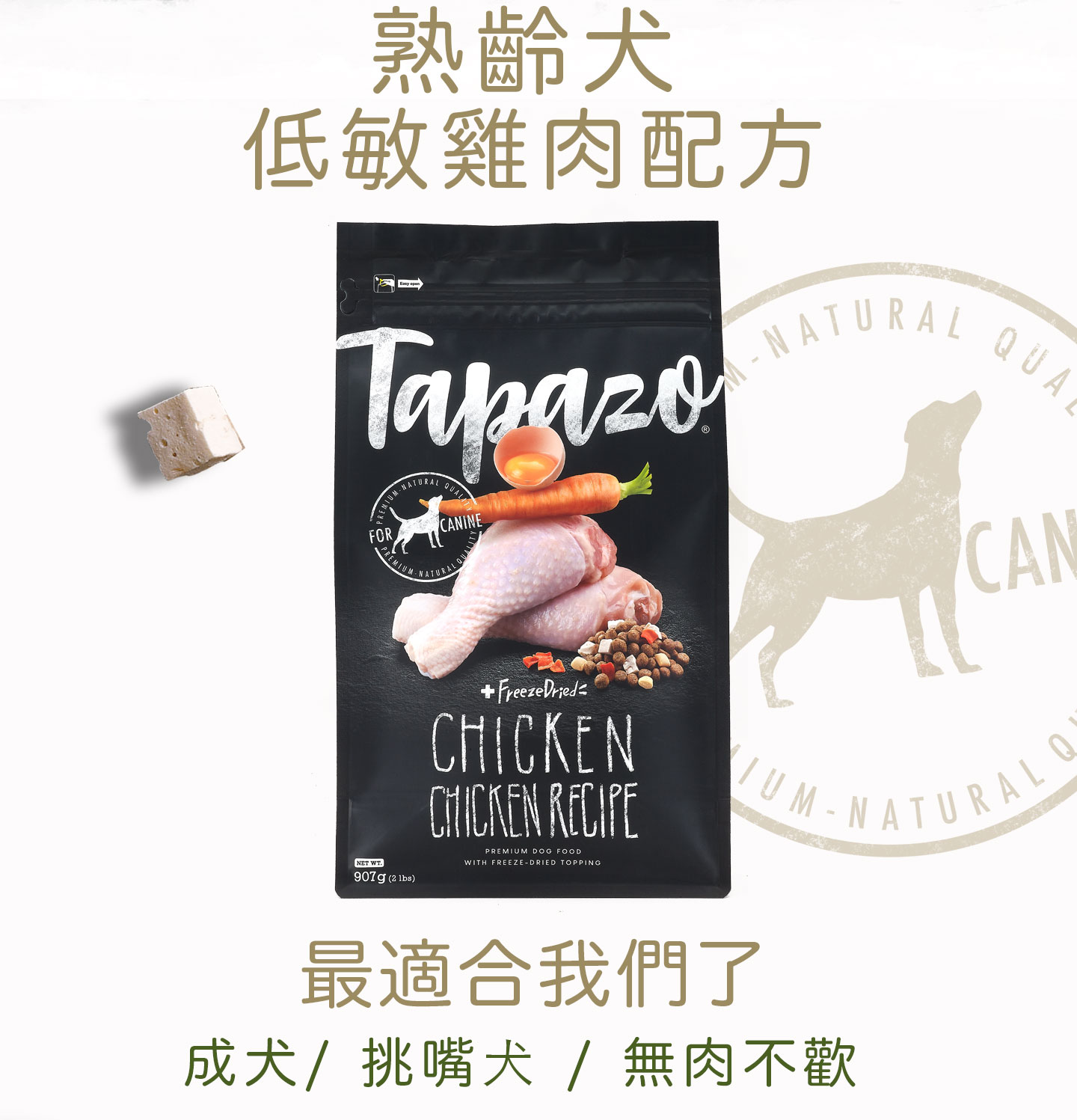 TAPAZO 特百滋 凍乾三重奏 - 熟齡犬低敏雞肉配方 15磅 老犬飼料