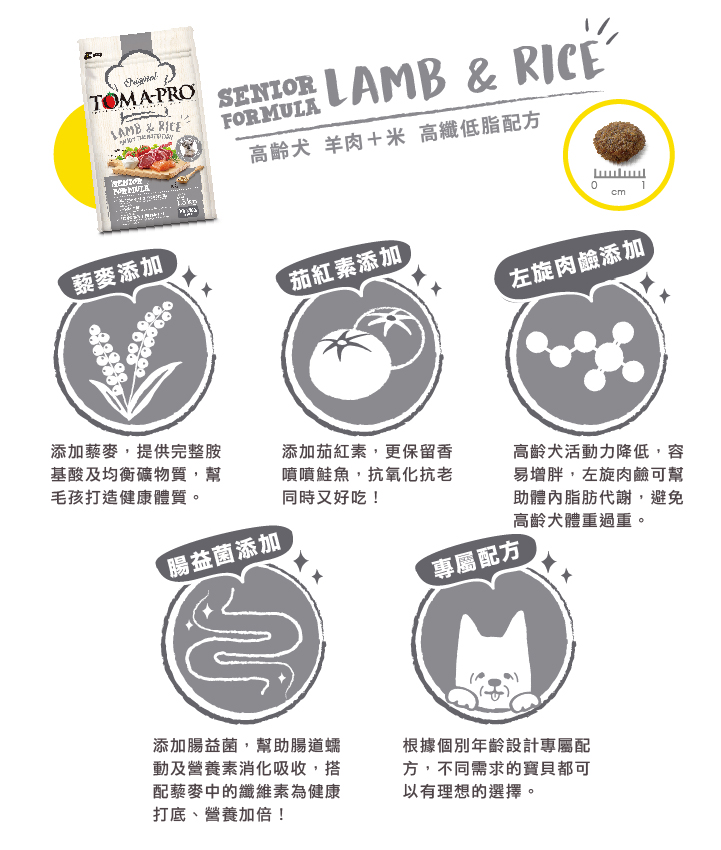 優格TOMA-PRO 熟齡犬高纖低脂 - 羊肉+米 7公斤 老犬飼料