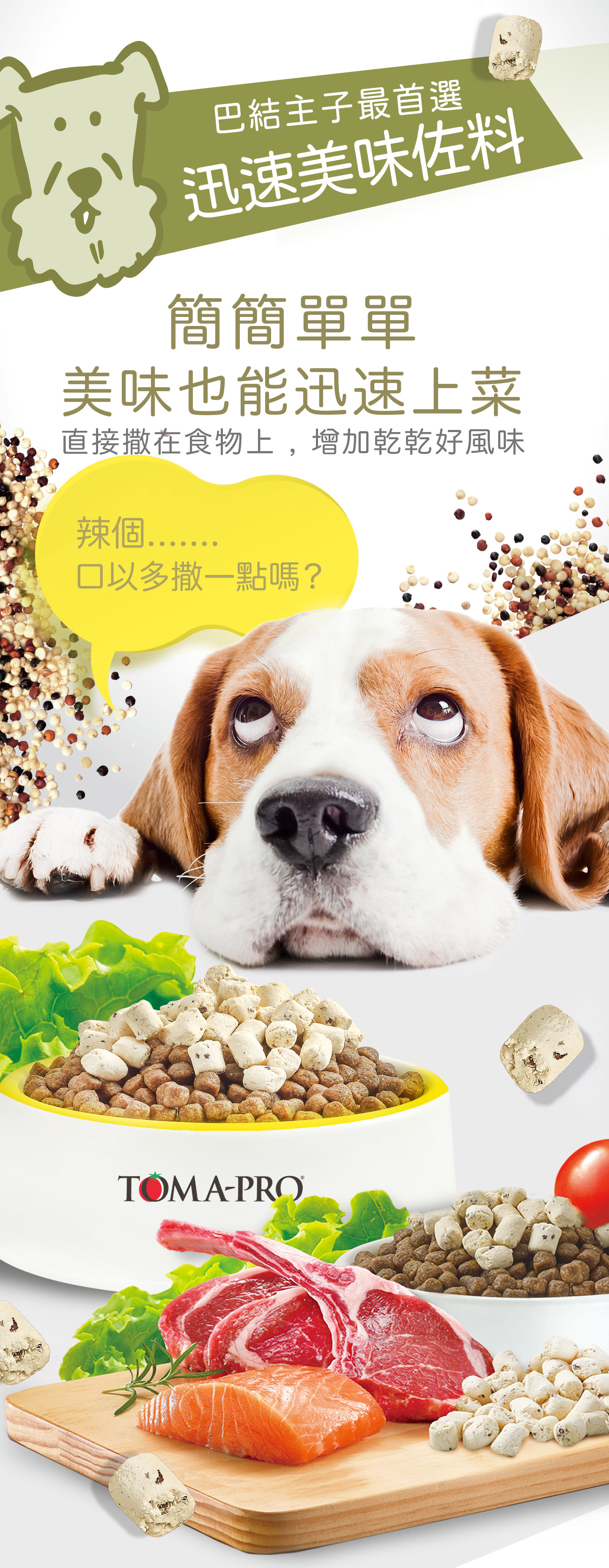 新優格TOMA-PRO 零穀鮮肉佐餐凍乾-羊肉+鮭魚配方 60克 狗狗零食 產品特色: 優格使用凍乾技術,鎖住95%原肉營養給予毛孩生鮮肉品絕佳的新鮮滋味, 加上營養蕃茄、藜麥及益生菌等食材,天然、原味、低加工。 用天然新鮮的食材讓每一個「優格寶寶」從此愛上吃飯時光。