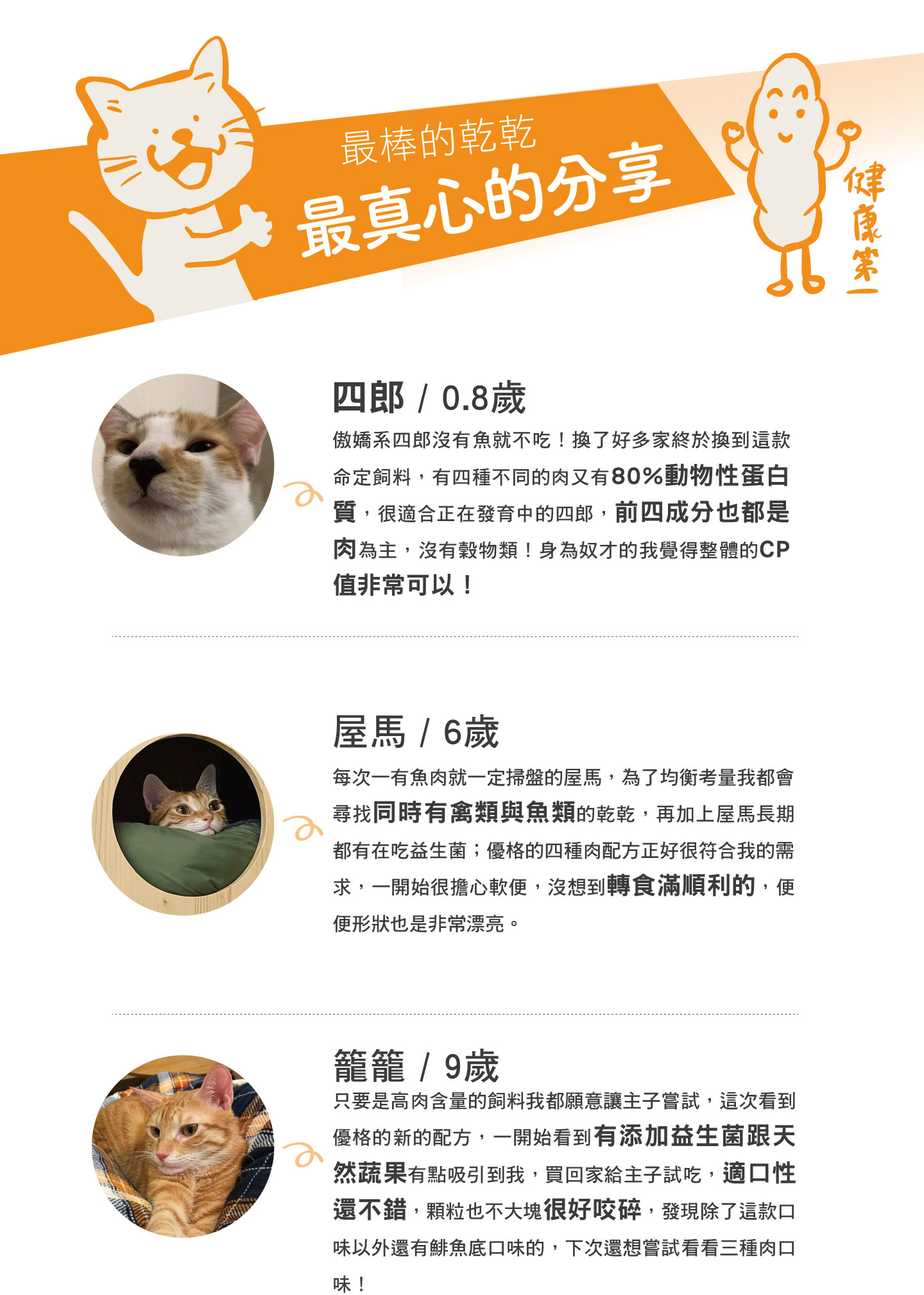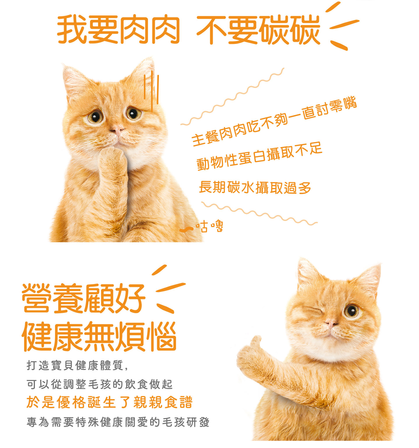 優格親親全系列皆添加益生菌與益菌生,更有豐富Omega3與Omega6,呵護主子的健康!