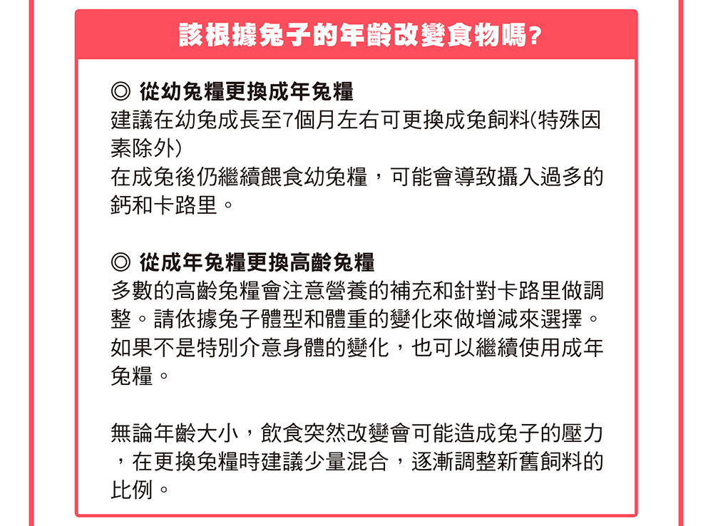 請根據季節和愛兔的身體狀況適當調整給予量,若有餵食牧草和蔬菜時,同時也請針對基本量進行調整。